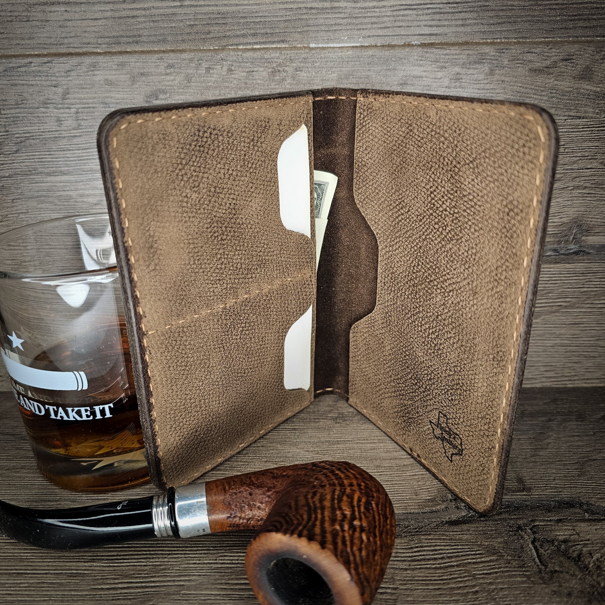This Passport wallet has three slots for carrying important things on your next trip like cards and cash. Oh and of course another pocket for your passport! It has tediously hand-slicked edges for a quality finish and a durable hand stitch to last a lifetime! Travel in style with this slick-looking wallet