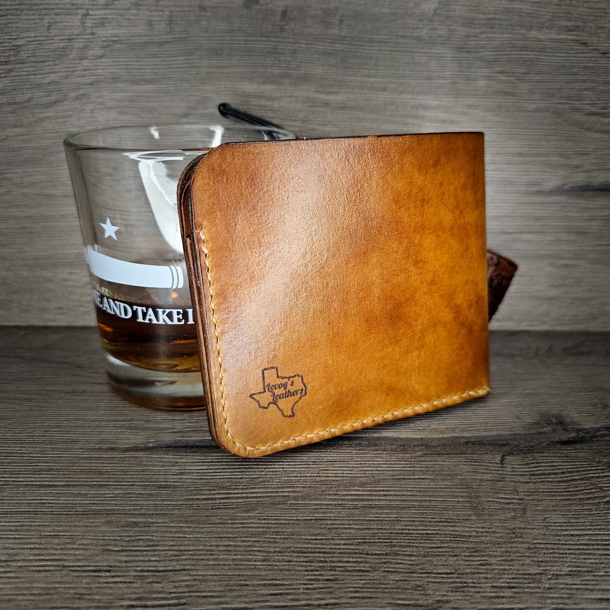 This simple wallet has two slots for carrying your everyday cards and a billfold slot for some cash! It has tediously hand-slicked edges for a quality finish and a durable hand stitch to last a lifetime!